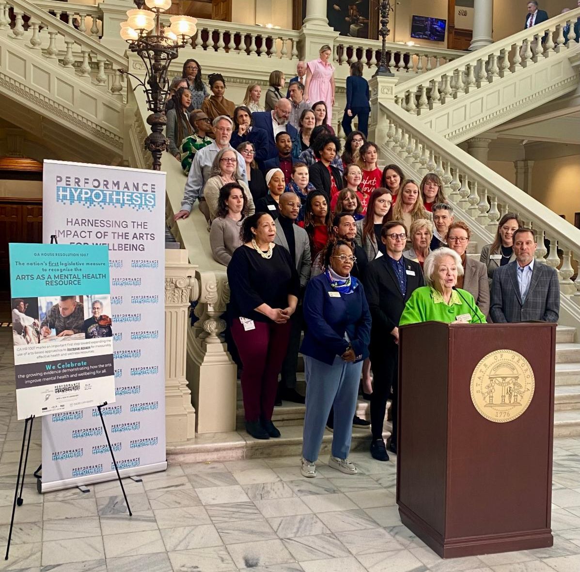 Friday, March 13: House Resolution 1007: Thanks to the entire Georgia arts community, including the Woodruff Arts Center and SouthArts, as well as the Georgia mental health community as led by Sarah Phillips of the Carter Center, for joining me in holding yesterday's press conference on HR 1007. I enjoyed partnering with Reps. Kim Schofield and Todd Jones to bring this Arts and Mental Health Resolution to the attention of all Georgians. Progress! Watch